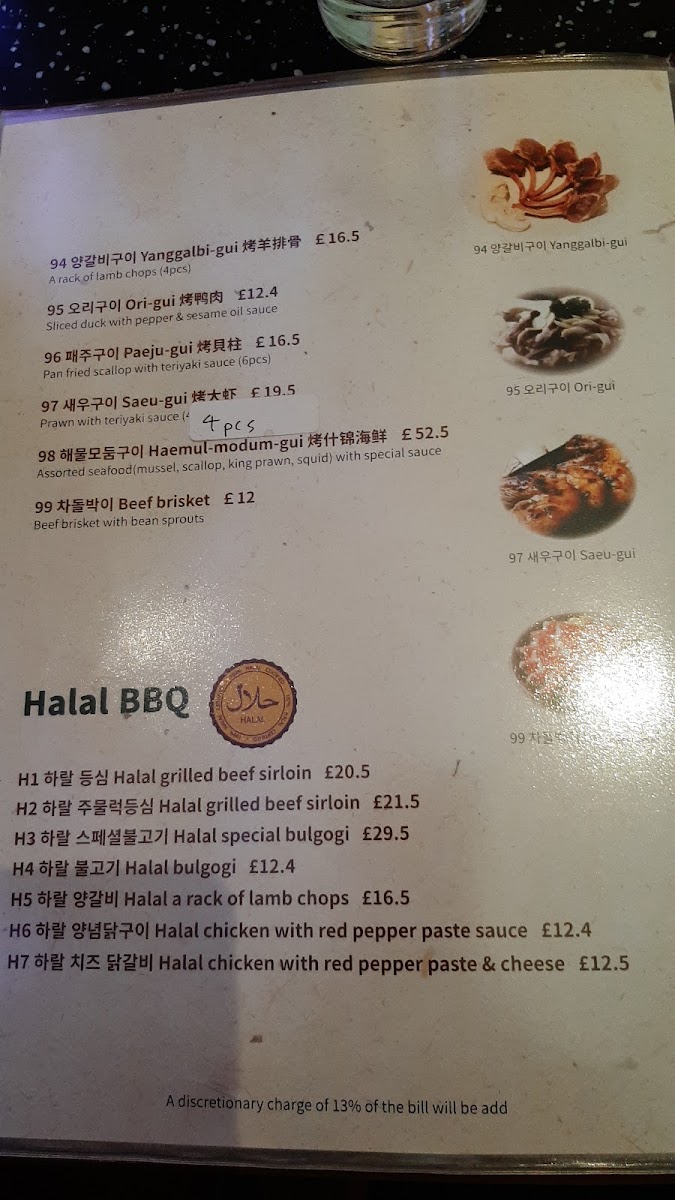 Arang Restaurant Menu